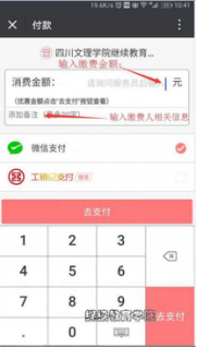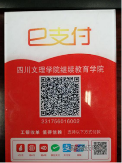 (2)直接扫描下方二维码缴费:第一步:扫码;第二步:输入缴费金额;第三步:添加备注信息:姓名+站点简称+年级+层次+专业,如:张三 大竹教进校2021高起专汉语言文学(注意:不备注者,公司不能确认其缴费信息);第四步:点击“去支付”付款,完成缴费。