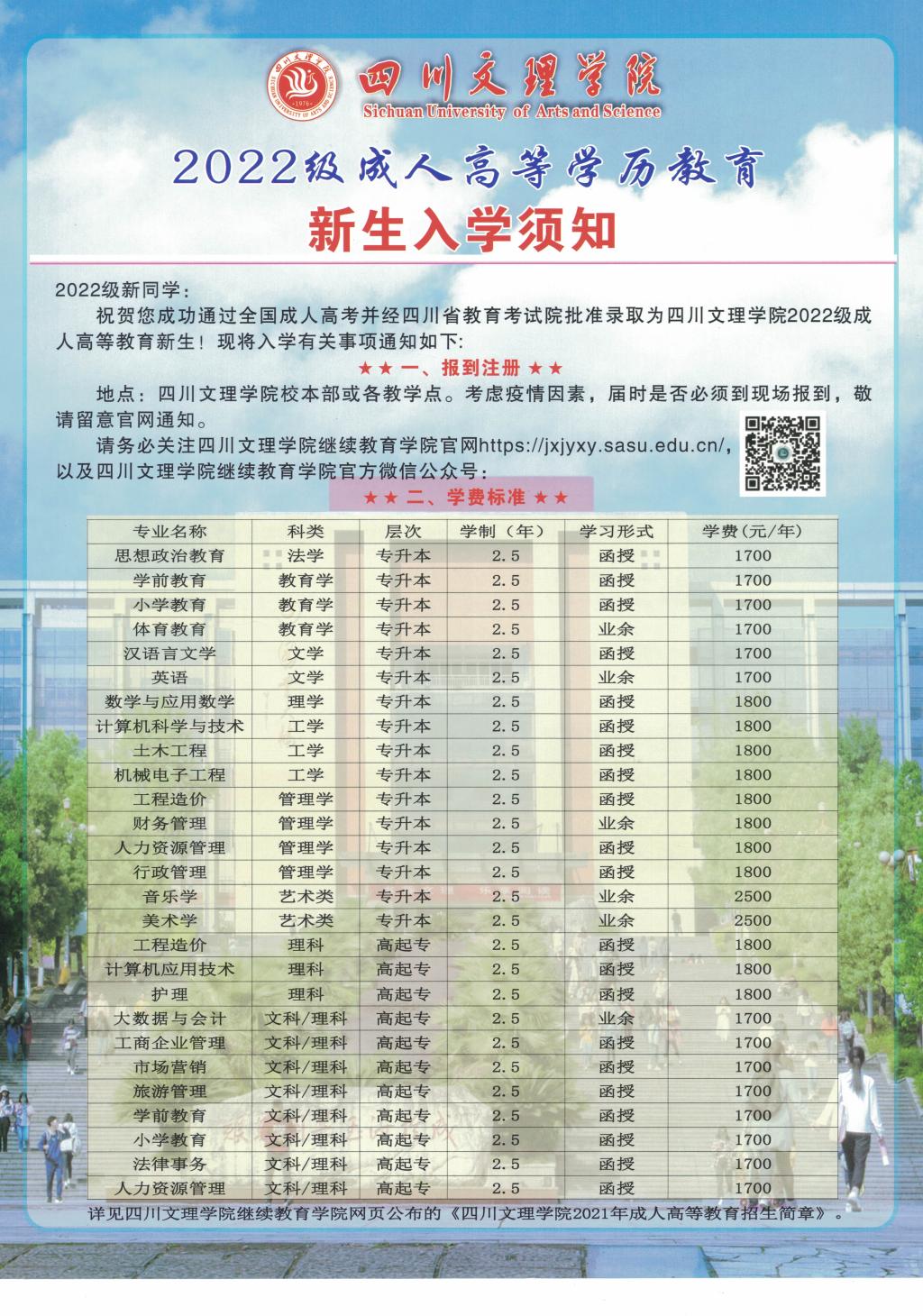 K1体育官方网站2022级成人高等学历教育新生入学须知