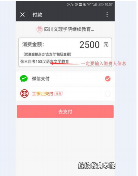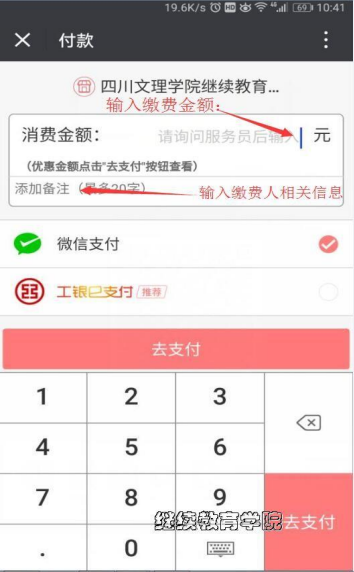 (2)网上缴费(交费二维码(支付宝、微信均可)及步骤见附件3、附件4,至少交一年学费,交费时一定要写备注:20.4+姓名+专业+专/本科)。