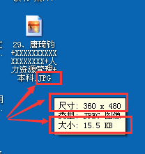 3、 鼠标放在照片上就会出现照片的尺寸(即像素)、大小、格式信息,如下:
