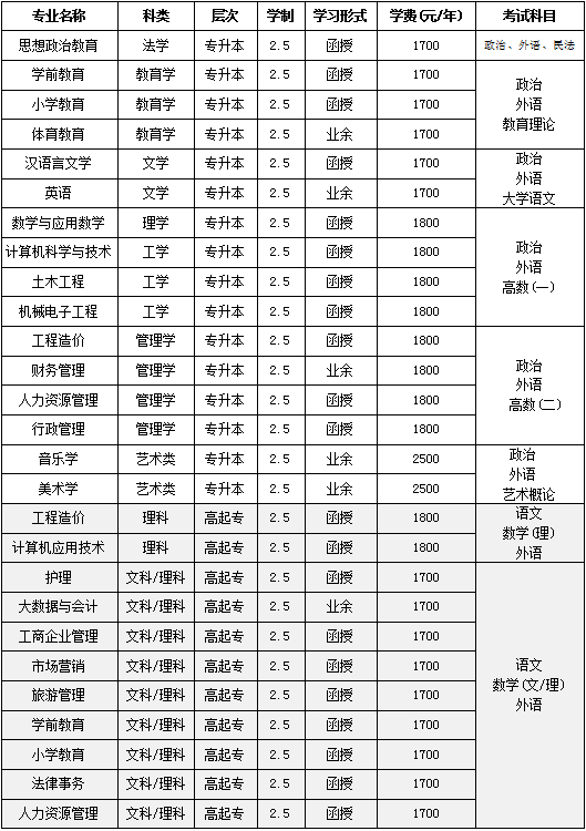 2、考试科目:各考试科目均由教育行政部门统一命题,高起专、专升本各专业考试科目共计3科,每科满分150分,总分450分。