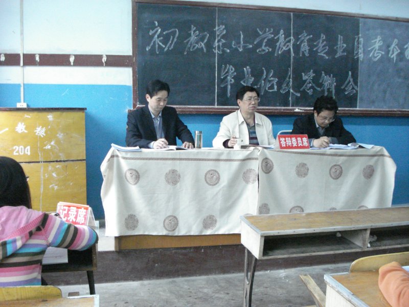 4月9日下午,初等教育系 “小学教育自考本科”毕业论文答辩会在老校区一教楼203、213教室同时进行。本次答辩邀请了成良臣教授、唐华生教授、赵泽碧研究员、李壮成副教授、王进副教授、张亚蓉副教授等担任答辩委员,小学教育083次自考的26名毕业生参加了答辩,初教系2007级、2006级全体员工旁听了答辩。