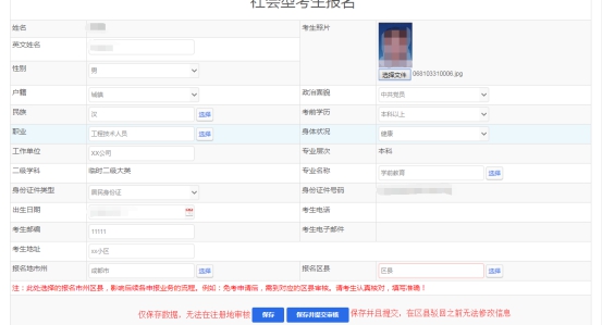 注意:某些考区可能会因报名考生过多,无法继续注册到该区县,您可以选择其他区县进行报名注册,报名注册的区县与您想报考参加考试的县区没有直接联系!