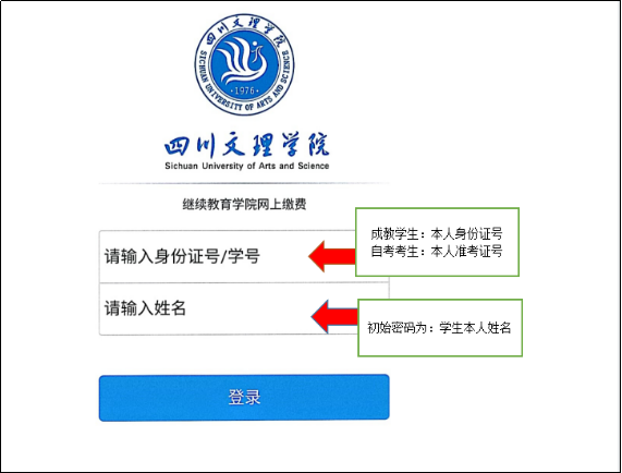 进入缴费平台登录界面,输入账号、密码,点击“登录”,进入缴费界面。