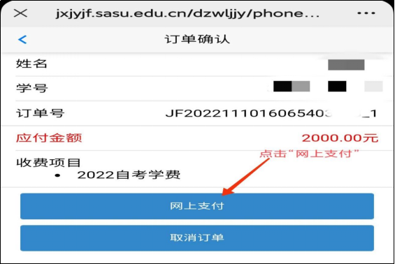 第三步,核对缴费信息,选择“网上支付”,完成缴费: