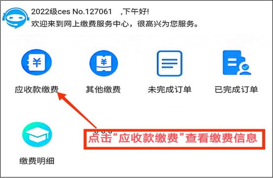 第一步,点击“应收款缴费”: