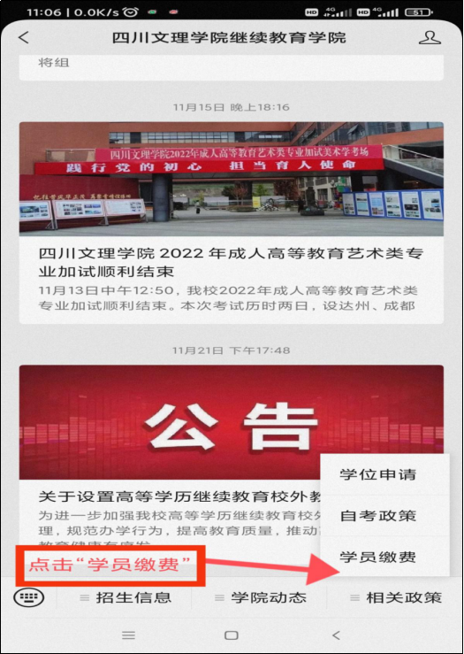 (二)点击“相关政策”中的“学员缴费”进入缴费平台登录界面;