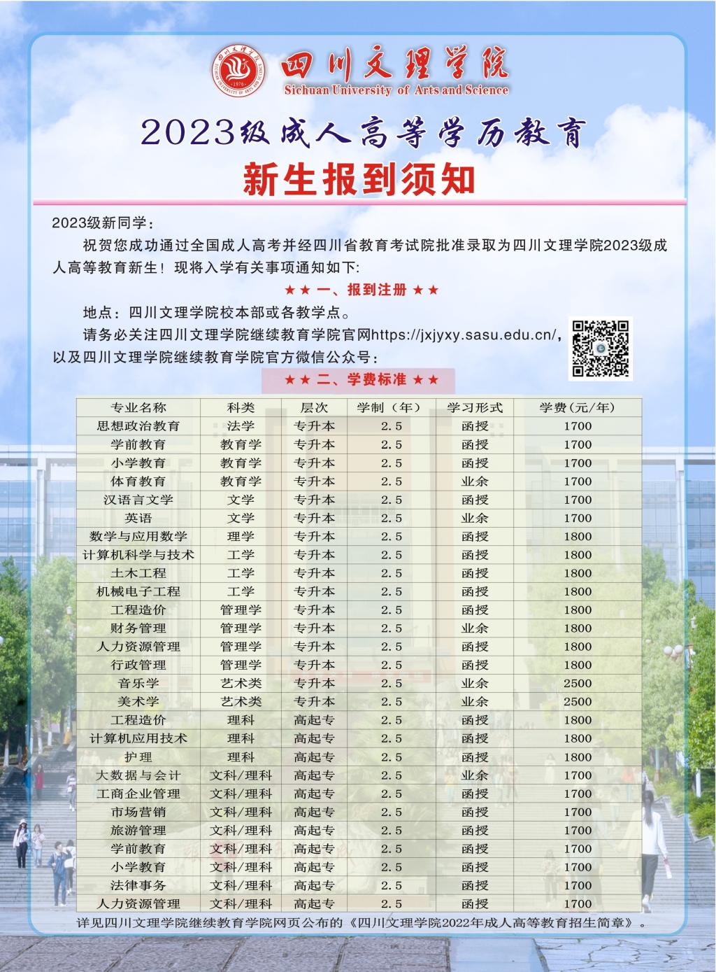 2023级成人高等学历继续教育新生报到须知