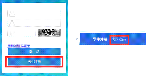 2. 忘记密码:已经登录过本系统并注册成功的考生,若忘记登录密码可用注册时填写的联系电话找回密码。找回密码入口如图1(注:找回密码时第一个输入框里是填账号并非联系电话