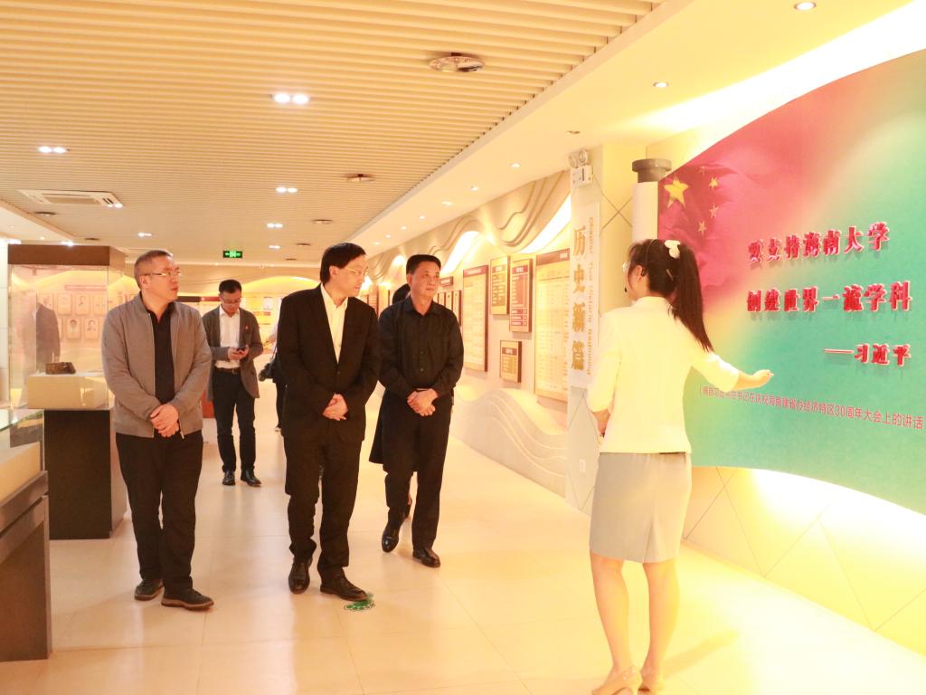 下午三点,王成端一行抵达海南大学,受到了海南大学党委书记武耀廷、副董事长胡新文的热情接待。王成端一行参观了海南大公司史馆,深入了解了该校的发展历史、办学特色与办学成果。